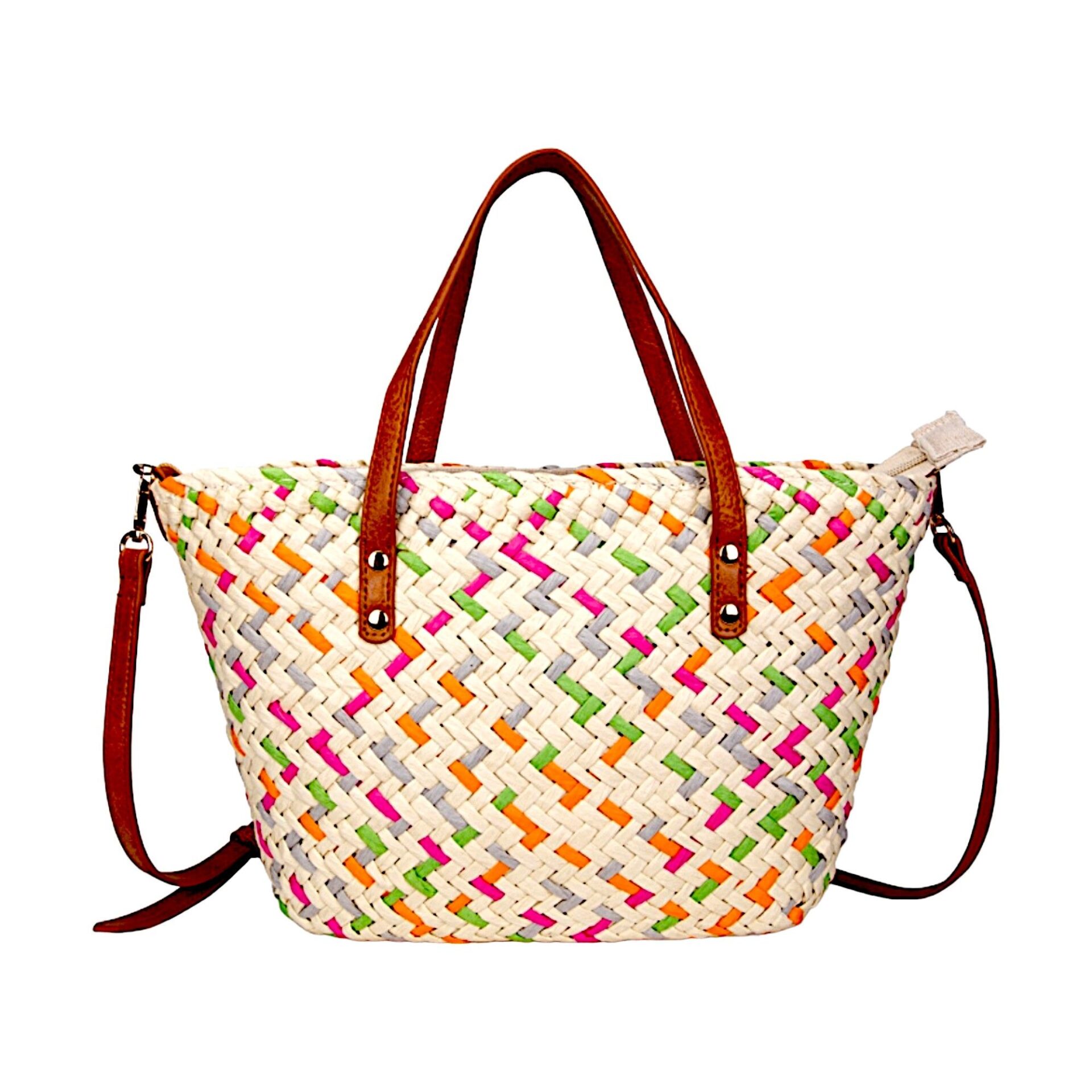 Material: Rafia de color natural, cuidadosamente tejida a mano por artesanos expertos.