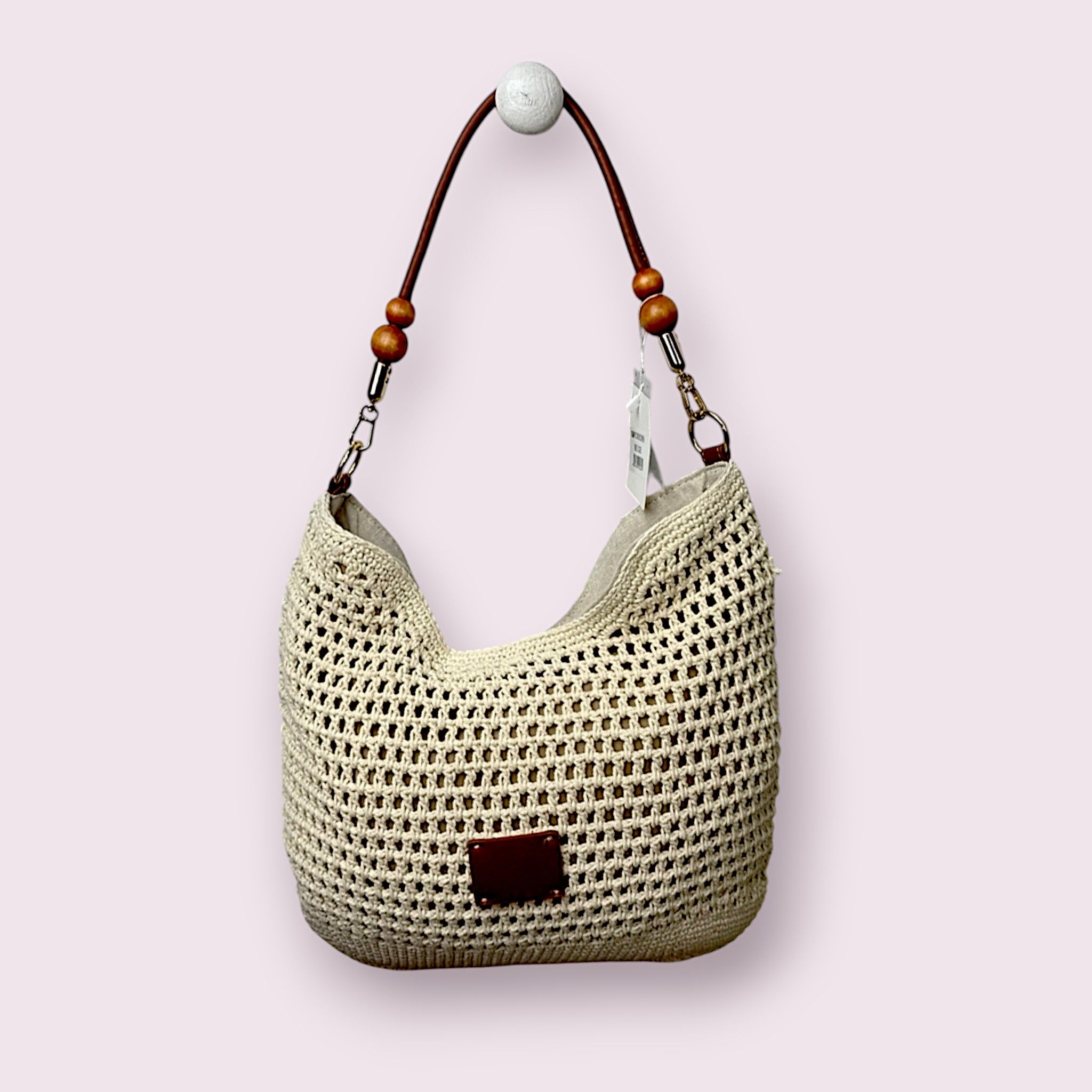 Precioso bolso de moda hecho a mano. Es de color beig con un deseño encantador. Asa de mano con decor, asa largo de hombro. Detalles tejidos a mano. Ideal para tus días de verano.