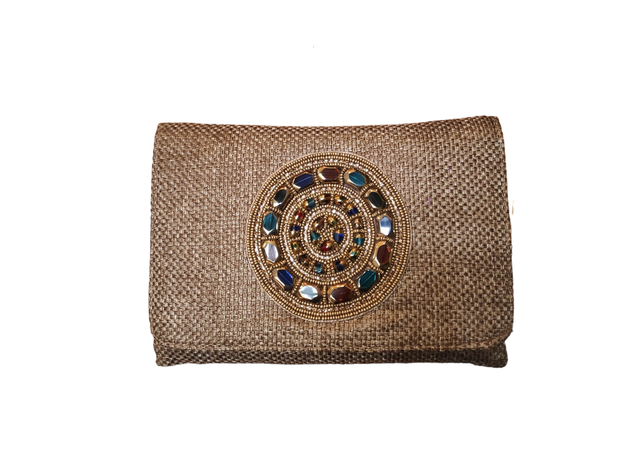 BOLSO SITARA ANTIK GOLD, MEDIDAS 22 X 15 X 4 CM, CON CADENA PARA COLGAR. COLOR ARENA