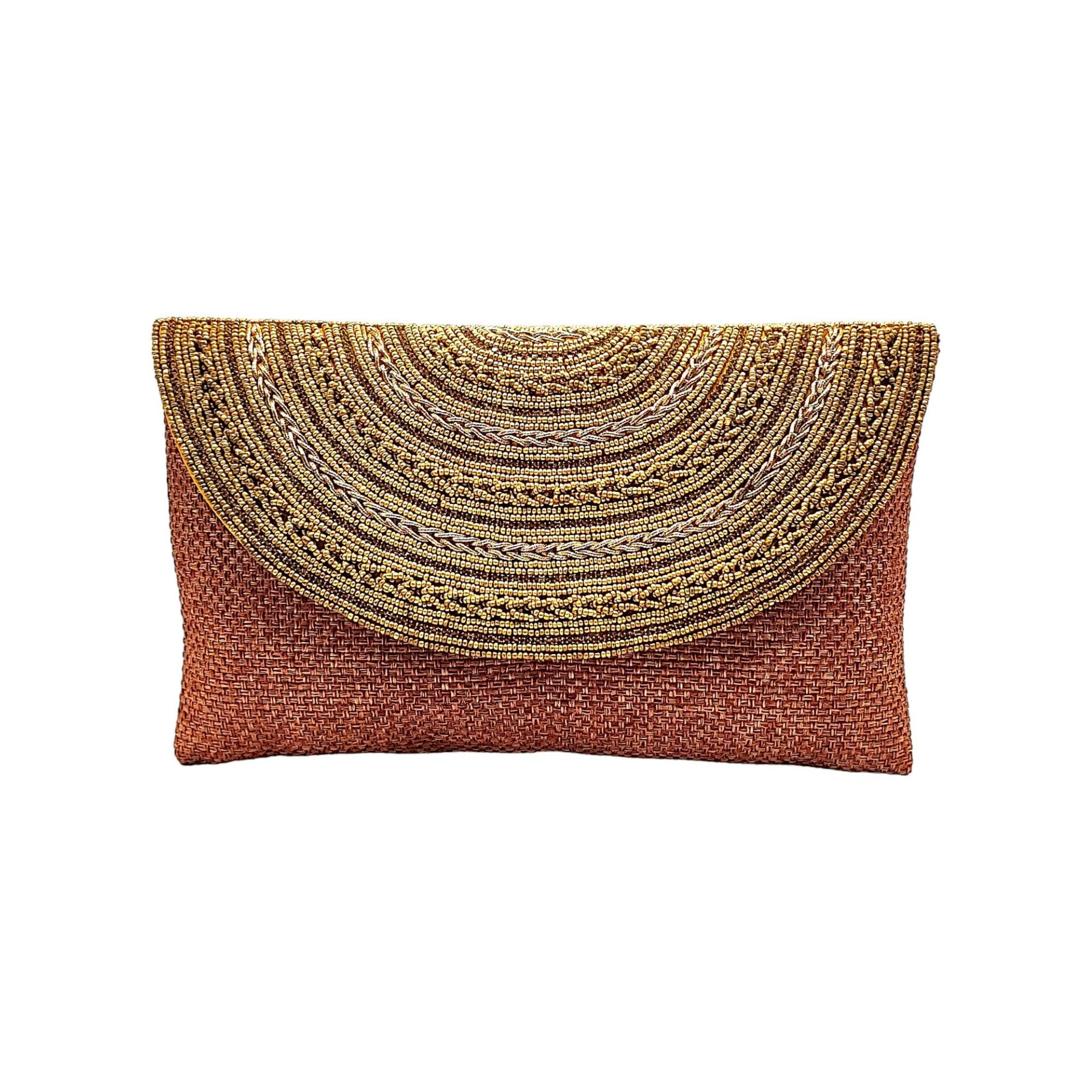 CARTERA CON PEDRERIA, MATERIAL YUTE CON SEDA, COLOR ROSA OSCURO, MEDIDAS 25 X14 X 4 CM, CON CADENA PARA COLGAR.
