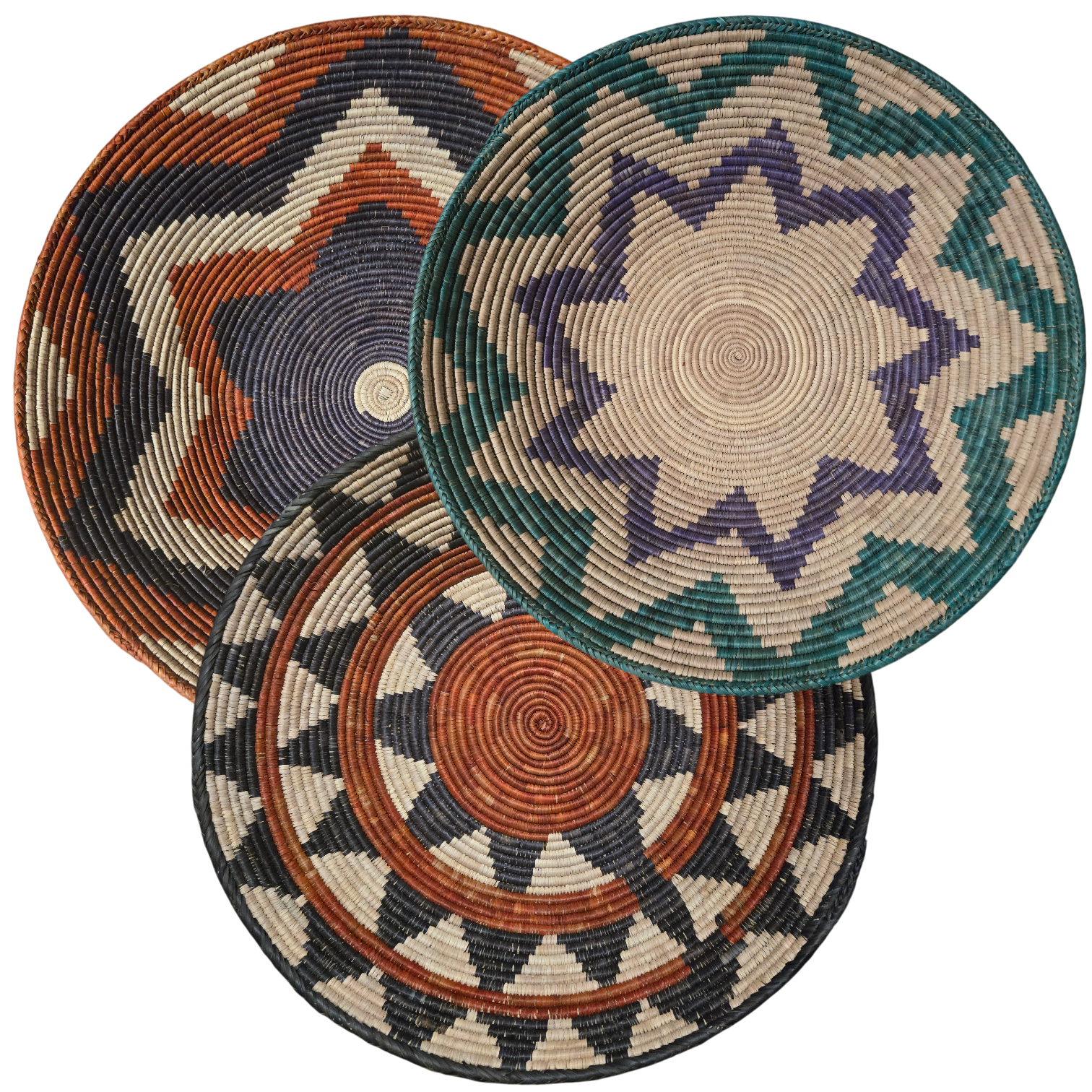 Bajo plato de mimbre pakestani tejida a mano: decoración de pared bohemia colorida (35cm)