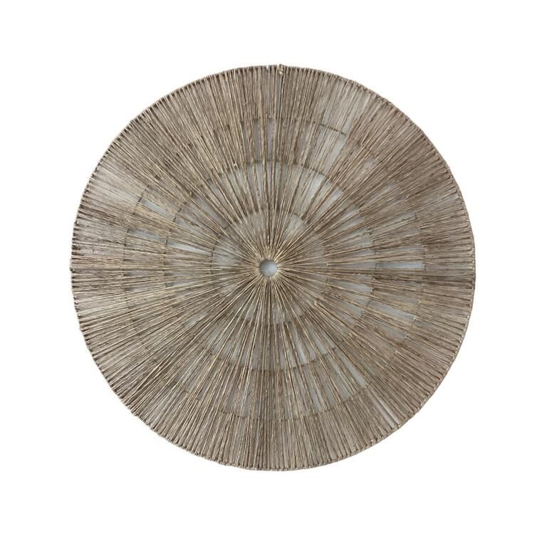 Decoración de pared elaborada en yute con estructura metálica.