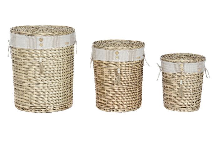 Ropero con tapa de mimbre forrado, hecho artesanalmente.
