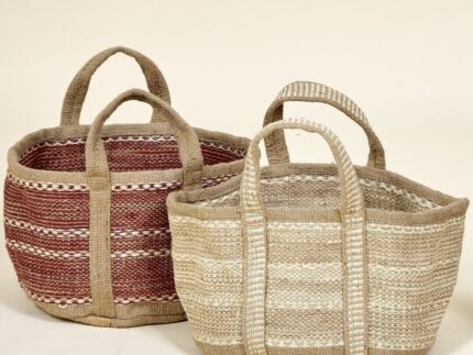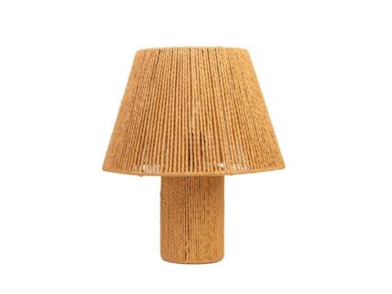 Lampara de sobremesa de fibras naturales, elaborada a mano.